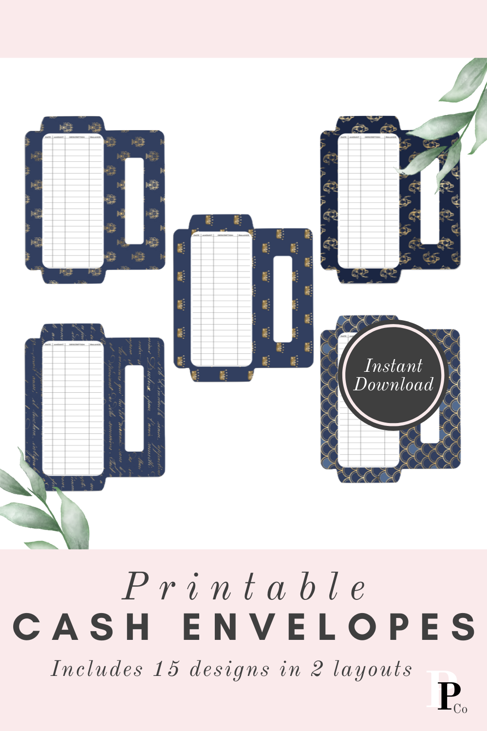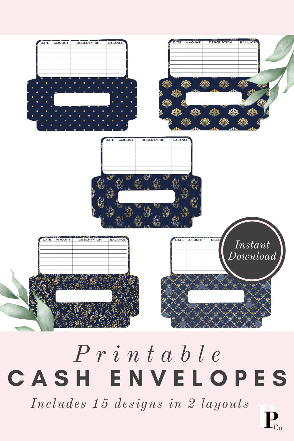 Cash Envelope Set - Dark Blue Mermaid Prints, Instant Download