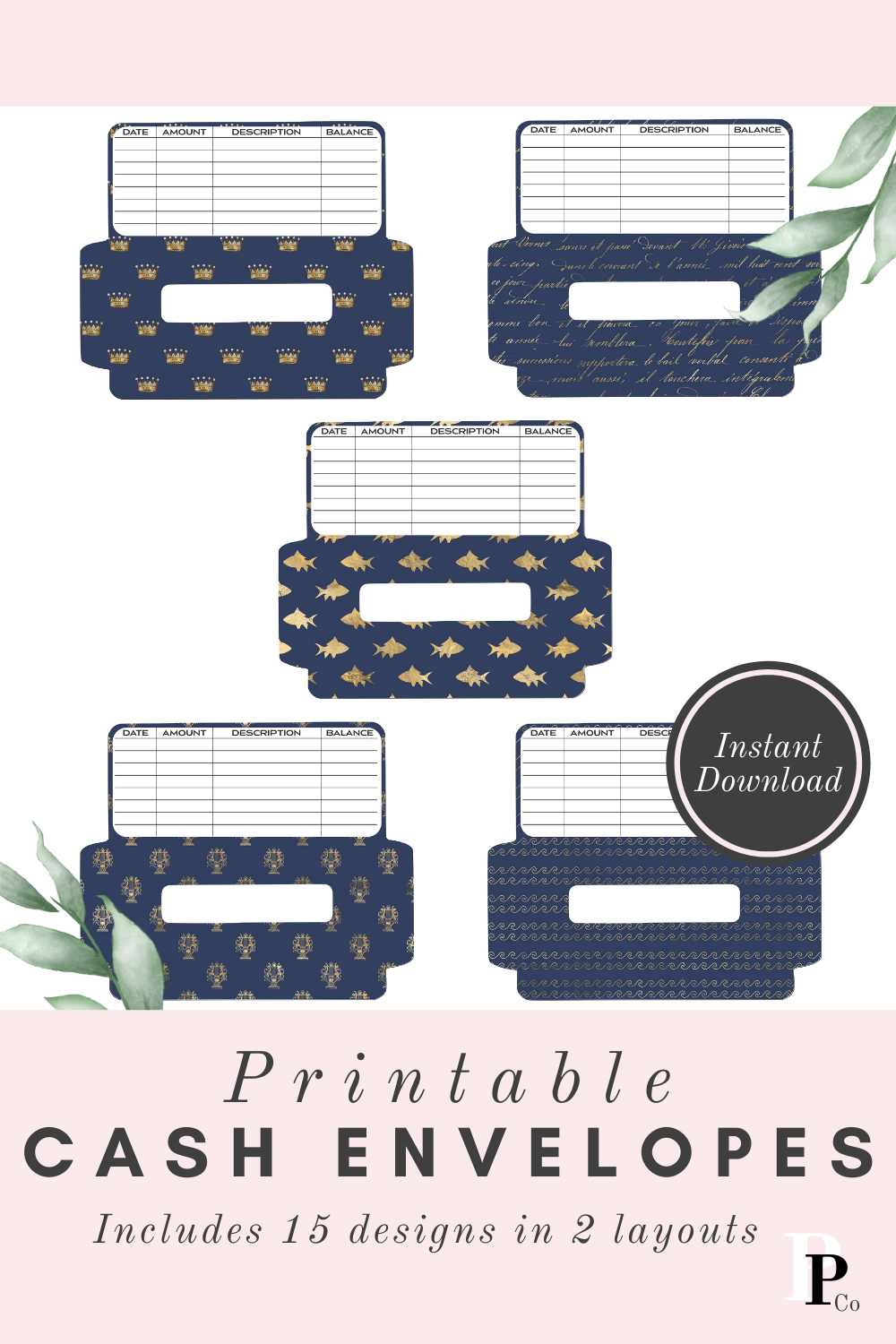Cash Envelope Set - Dark Blue Mermaid Prints, Instant Download