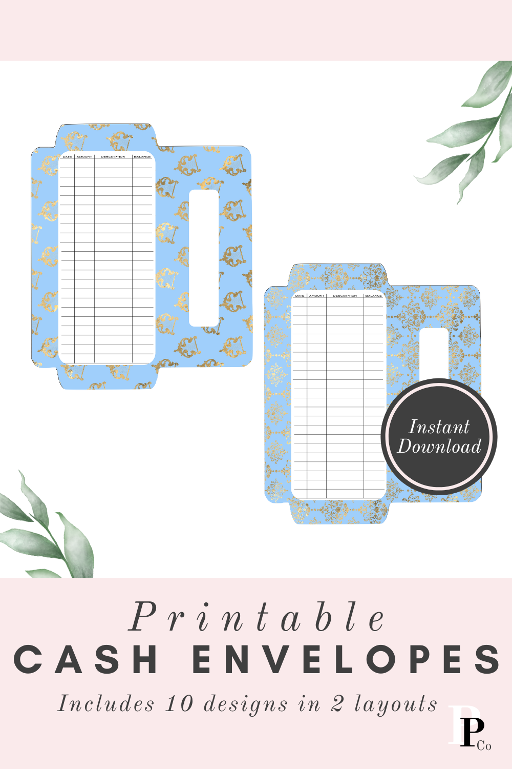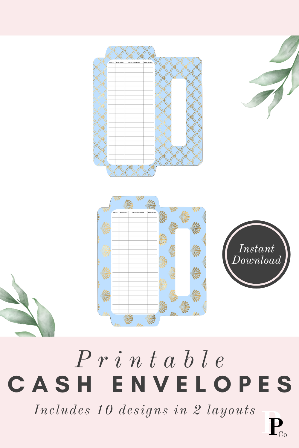 Cash Envelope Set - Light Blue Mermaid Prints, Instant Download